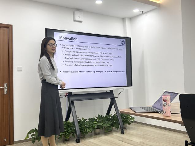 2024年11月27日下午,yl6809永利会计与财务系在理科大楼A1214会议室举行学术报告会。本次报告邀请到了复旦大学管理公司博士生郑敏,报告主题为“Executives’ Intertemporal Choice Preferences and Firm Performance: A Textual Analysis Approach”。本次报告由会计与财务系系主任连立帅副教授主持,会计与财务系多位师生参会交流。