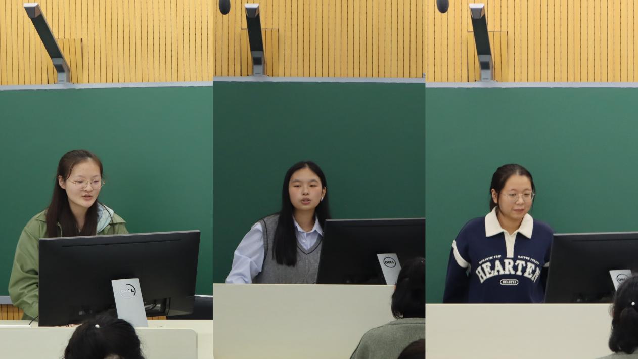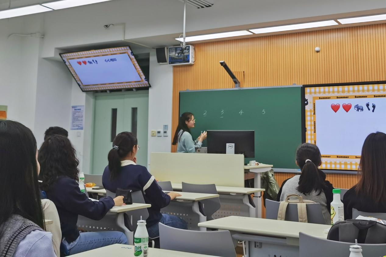 基本培训之后,中心成员们一同开展了丰富多彩的破冰和团建活动。同学们先以随机抽签形式分为若干小组,通过组内交流增进彼此了解,初步建立起团队概念。随后,以小组为单位先后完成若干游戏环节:率先进行的成语接龙游戏既考验了组员们的词汇量,也锻炼了团队的协作与反应能力,每个小组的成功接龙都赢得了掌声;随后进行的台词猜测游戏考察了组员间的理解和配合,现场既有因精准描述而迅速猜中的欢呼,也有因误解而引发的阵阵笑声;最后听歌辨曲游戏更是将气氛推向高潮,各小组参与踊跃,在听到关键音符后迅速举手抢答,现场气氛热烈而活跃。团建活动不仅促进了中心成员间的默契与友谊,还增强了团队的凝聚力和向心力。