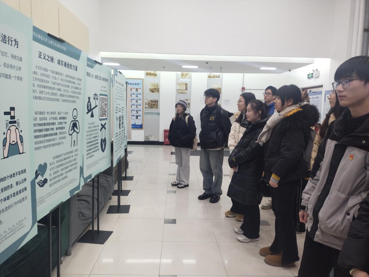 随后,全体支部党员移步至老员工活动中心一楼参观“廉心洁行”yl6809永利廉政心理科普展。展览分为“心智探秘:认知与廉洁同行”“社会镜像:环境塑造的廉政风貌”“千人千面:个体差异与腐败心理”“智慧之光:心理学赋能反腐倡廉”四大板块,通过丰富的图文资料、互动体验和多媒体展示,从科学心理学角度分析了廉政心理认知机制,深入探讨了如何运用心理学方法与技术防范腐败行为,旨在提升党员们的廉政意识和心理素养。