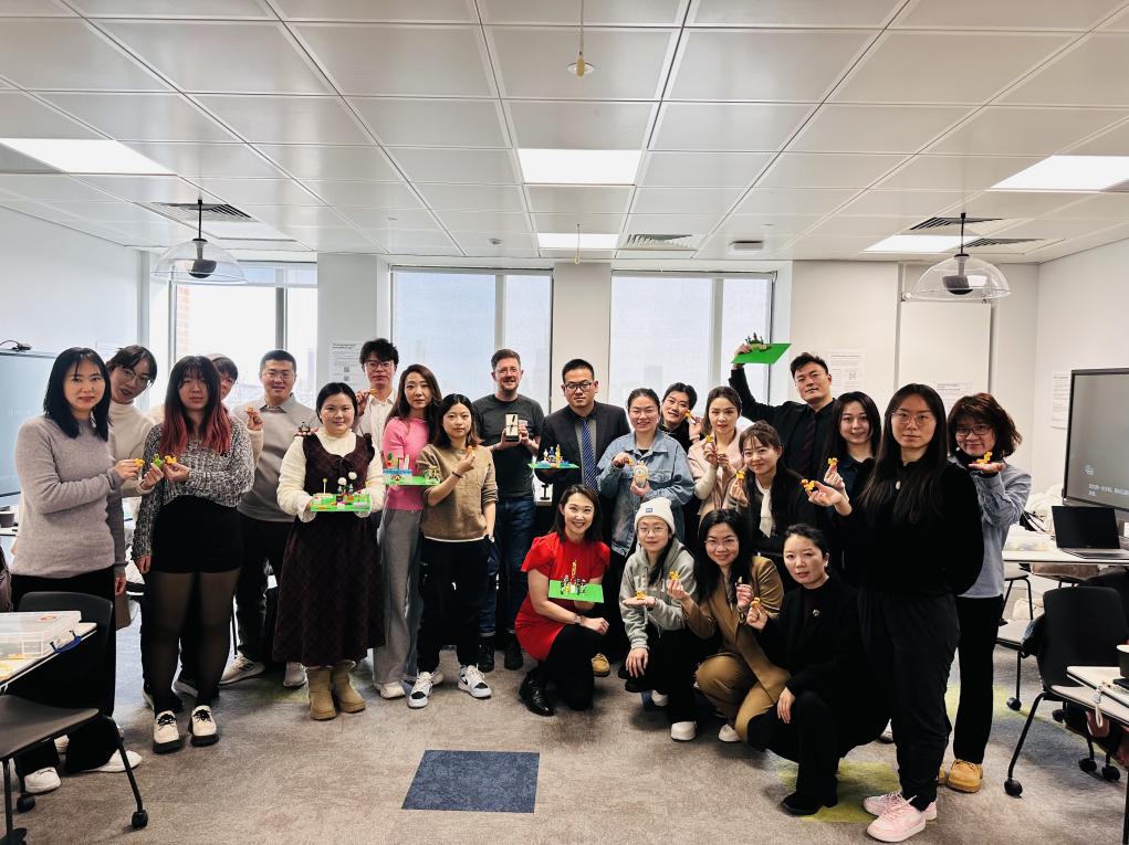Sean Glendhil是利兹大学高级学习技术员兼Lego Serious Play培训师,乐高商业模拟培训以体验式学习为核心,通过乐高拼搭实践和团队协作,探讨商业策略制定、个人学习偏好和团队协作的多样性与重要性。培训伊始,Sean强调了“学习应充满乐趣”的理念,分享了通过乐高拼搭,培养批判性思维、空间意识、沟通能力以及韧性的个人经历,鼓励学员在实践中探索和创新。开场活动中,同学们被分组要求用相同的乐高组件拼搭“鸭子”,尽管材料和任务相同,每个人的作品却风格迥异。这一活动生动展现了多样性的重要性,提醒同学们在团队合作中尊重彼此的独特视角。
