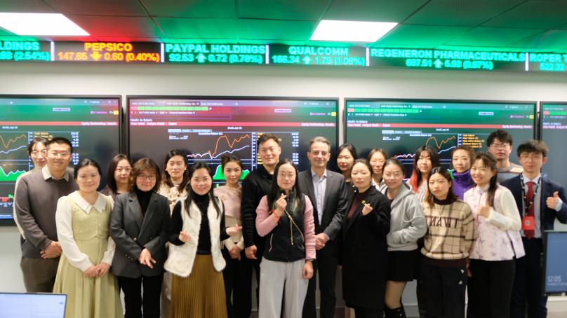 理论与实践相结合是此次访学的一大亮点。在模拟交易工作坊中,Costas副教授为员工们演示了如何运用彭博终端进行投资策略的筛选、回测和实施。他以低市盈率和小公司投资组合策略为例,通过真实数据的展示,让经管学子直观感受到量化投资策略在实际操作中的应用。在工作坊中,员工们积极参与,跟随Costas副教授的演示操作彭博终端,体验了从筛选股票到构建投资组合的全过程。通过实际操作,员工们不仅加深了对量化投资理论的理解,还掌握了彭博终端这一国际领先的金融分析工具的使用方法,为未来的职业发展奠定了坚实的基础。