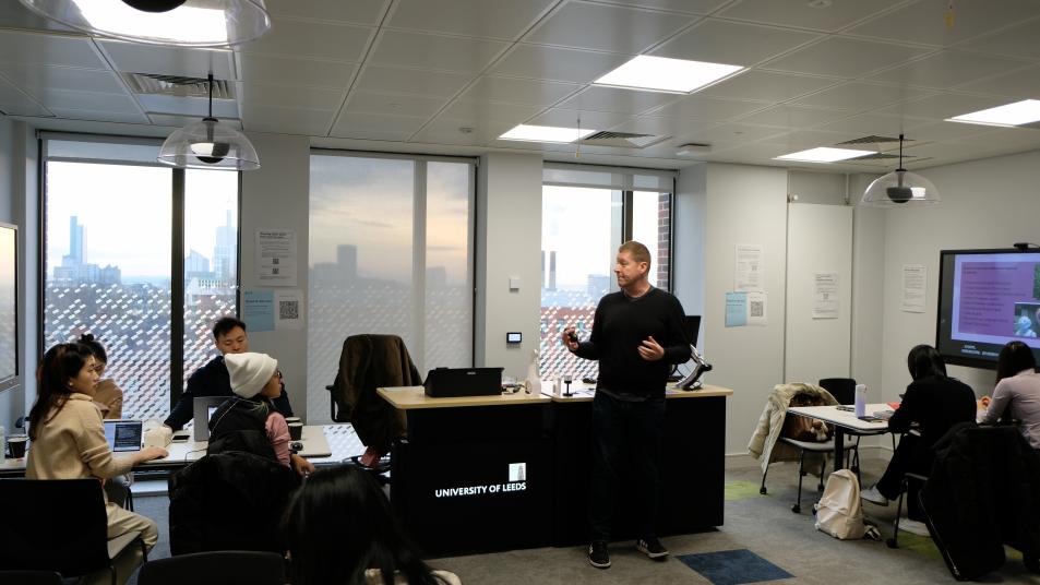 James Mason是英格兰约克郡西部和北部联合商会企业高管CEO,在利兹大学商公司的邀请下,他从外地专程赶到校区内与访学师生对谈与交流。活动中,James Mason分享了他的个人创业历程,从年轻时涉足制造、媒体、体育俱乐部到旅游业等多个行业,强调了保持积极态度和克服困难的重要性。他还讲述了商会作为非政府组织的角色,如何支持当地经济的发展,并在全球范围内促进商业扩张、就业创造和国际贸易。