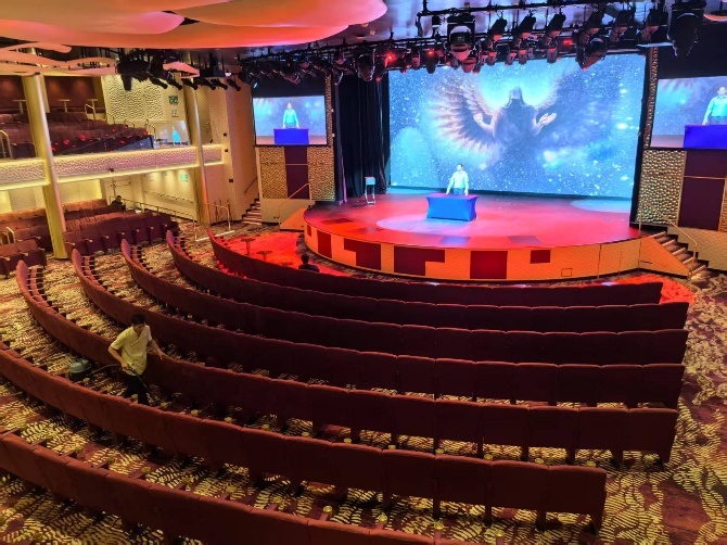 邮轮被誉为“移动的海上流动度假村”。“爱达·魔都号”总吨位达13.55万吨,全长323.6米,拥有20层甲板、2125间客舱,最大载客量超过5200人。在邮轮工作人员的带领之下,授课教师孙晓东教授以及相关专业员工参观学习了邮轮船上餐饮、娱乐、康健、休闲、运动、购物等设施、服务及运营管理业务。