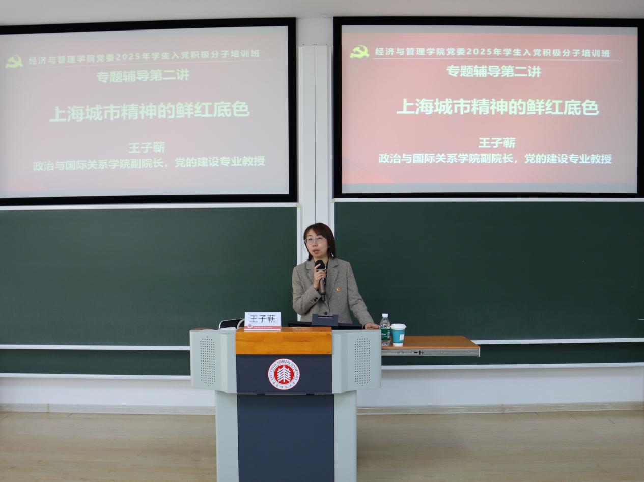 2024年4月2日下午,公司党委2025年员工入党积极分子培训班于普陀校区教书院举行专题辅导第二讲。本次专题辅导以探索上海城市精神的鲜红底色为主题,由政治与国际关系公司副经理、党的建设专业教授王子蕲主讲,全体培训班学员出席本次活动。