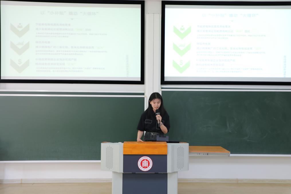 第一组以“小补贴撬动大循环”为主题,详细阐述了如何通过投资、消费和出口三方面激发国内需求,推动经济实现良性循环。他们分析了国家在扩大内需方面的相关支持政策,强调了在青年创业与就业、创新与科技领域的应用,展示了新时代青年在经济发展中的重要使命与责任。