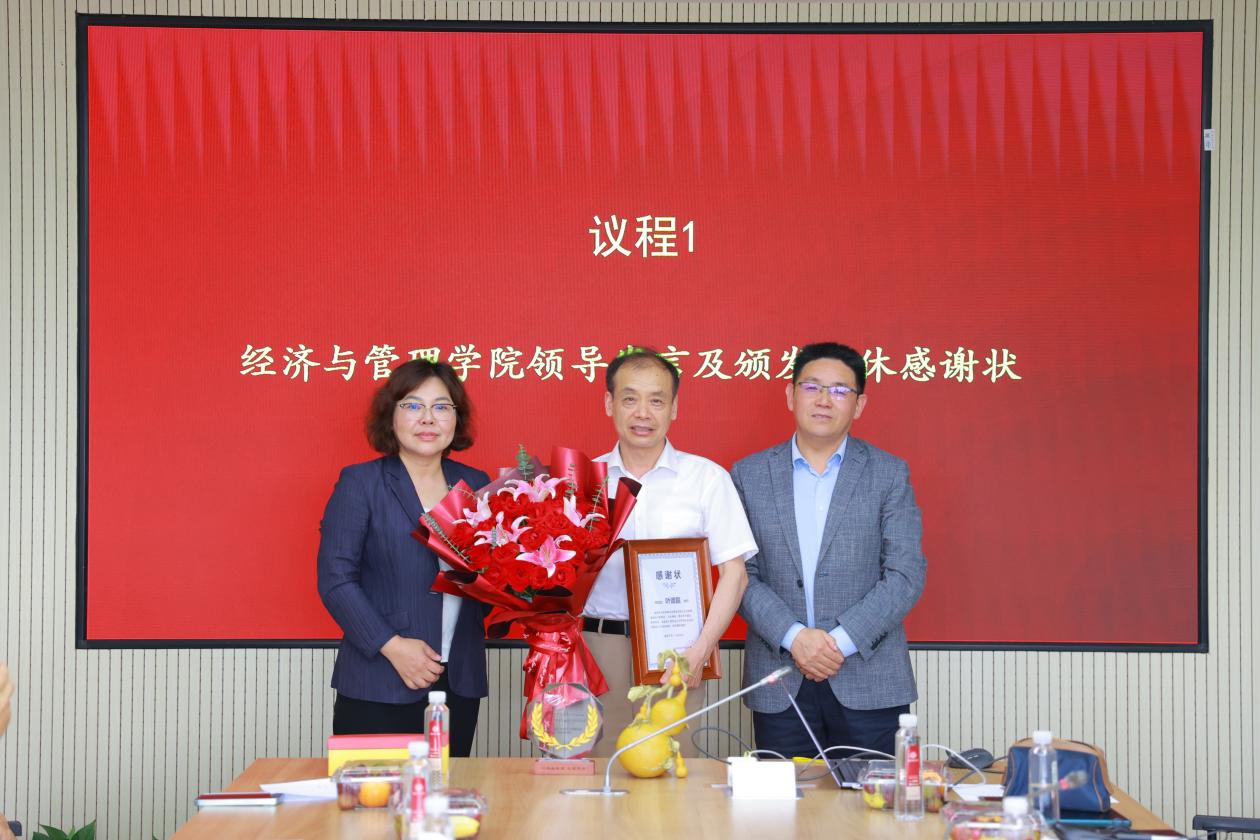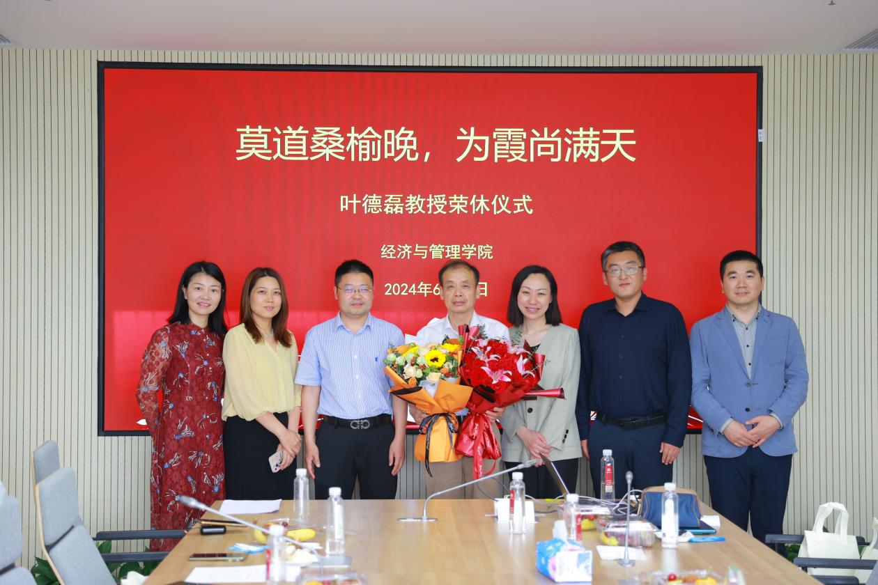 6月12日下午,yl6809永利在理科大楼A814会议室举行荣休仪式,以最隆重、暖心的方式感恩、礼敬和祝福叶德磊教授。公司党委书记岳华、经理殷德生、党委副书记赵庆、经济学系教职工及员工代表共计三十余人,共同见证了这一温馨时刻。