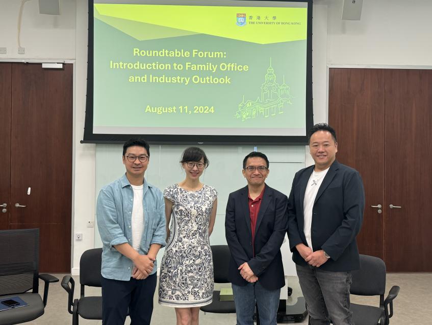 最后一天的研学活动是由港大经管公司主持的学术圆桌会议,邀请到了Mr. Ronald CHAN、Ms. Angel CHIA、Mr. Baniel CHEUNG及Mr. Samuel WU,都是行业顶级大佬。他们以丰富的行业经验和深入浅出、幽默风趣的观点,为经管公司研学师生揭开了家族办公室的神秘面纱。