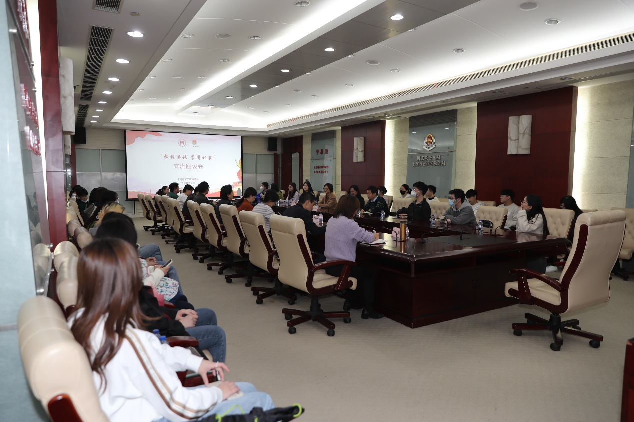 随后,师生代表与虹口区税务局孙焦燕副局长、办公室沈冰冰主任以及来自税收风险管理局、财产行为税和社会保险费科、企业所得税科、个人所得税科、货物和劳务税科、人事科、征管科等7个科室的主要负责人开展了“校税共话、学用相长”的交流座谈会。