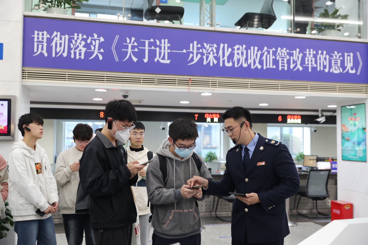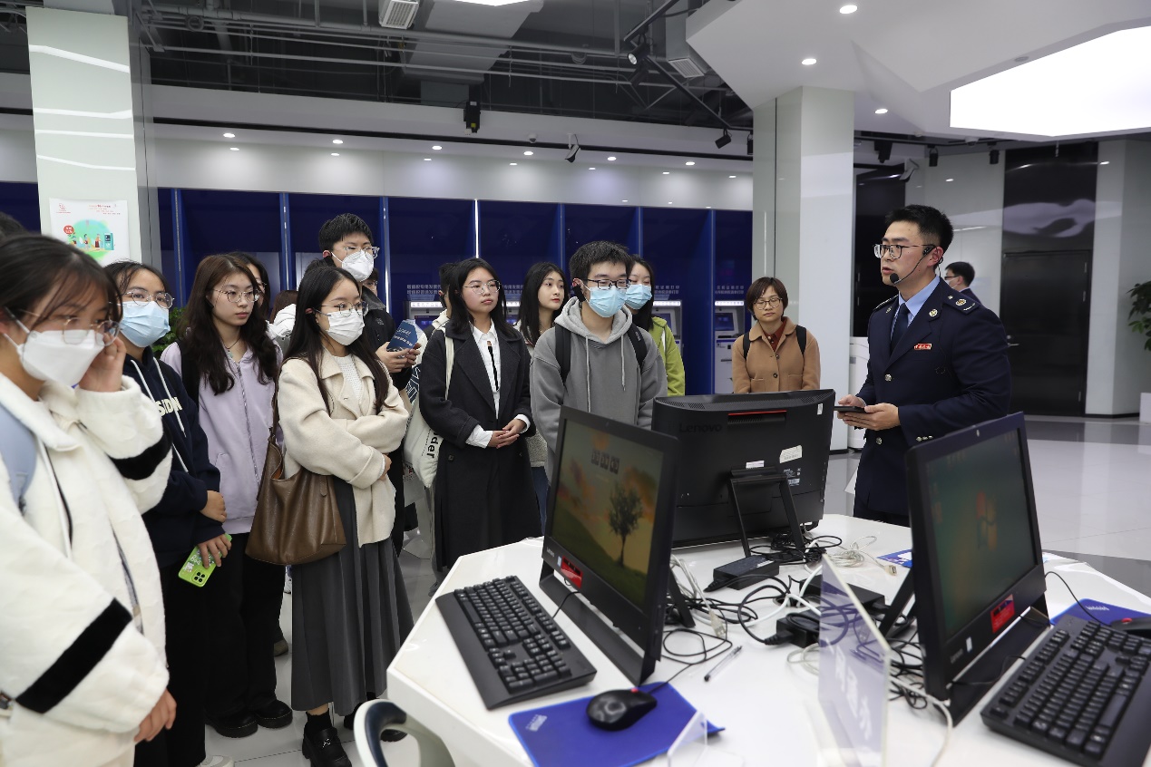 首先,同学们在税务工作人员的带领下参观了虹口区税务第一所办税大厅,了解到虹口区税务局不仅率先建立了“一窗全能”窗口、有效提升业务办理效率,还设立了帮办工作室、税费争议调解室,积极探索推动问办结合方式,致力于保障纳税人合理诉求得到解决。在工作人员的指引下,同学们现场使用上海税务微服务小程序完成了线上预约,亲自操作“双屏”互动终端体验电子税务局业务,切身体验了便捷化、精准化的业务办理流程。