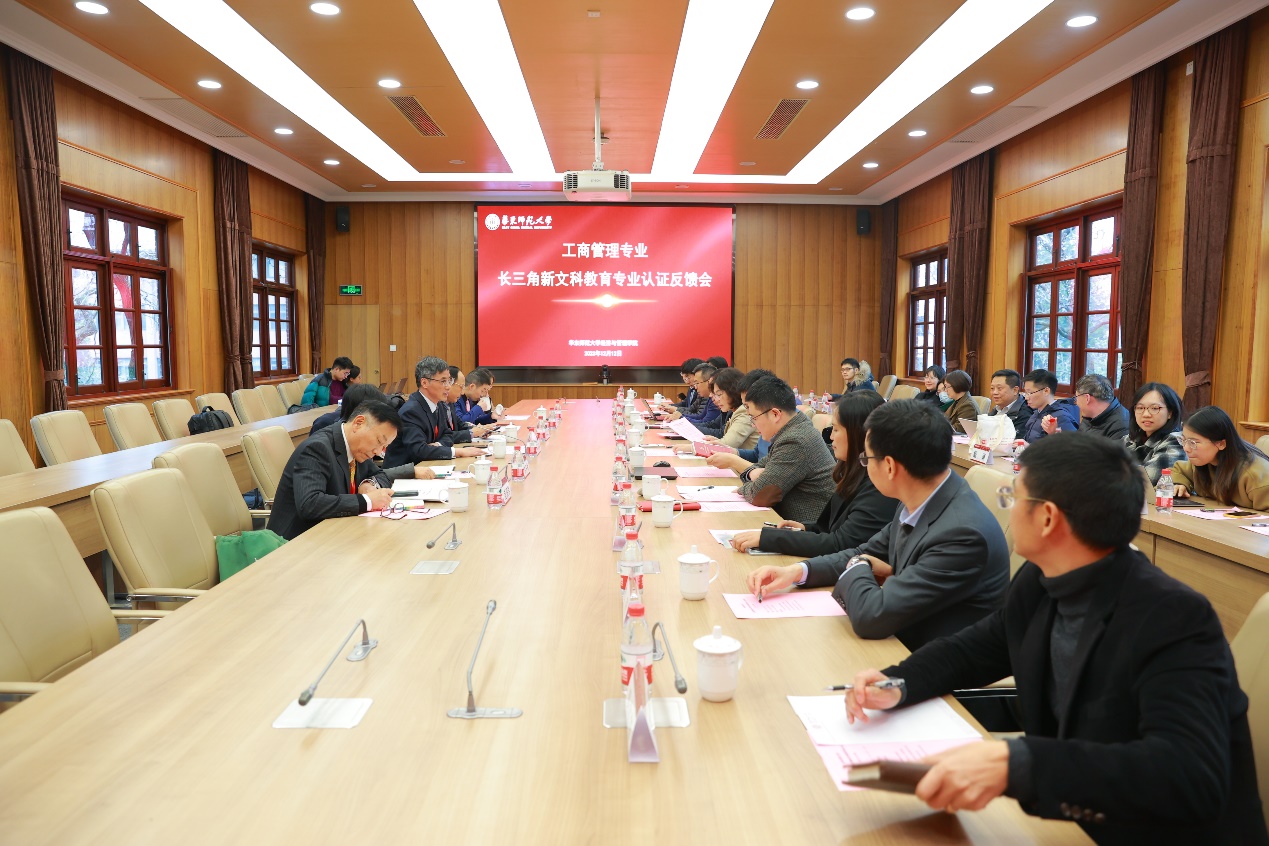2023年12月11日至12日,长三角新文科教育认证联盟对公司工商管理专业开展了为期两天的专业认证现场考查工作。此次现场考查专家组由上海交通大学陈业新教授、华东理工大学陈洪安教授、上海财经大学韩冬梅教授、安徽工程大学桂云苗教授、上海临港海洋高新技术产业发展有限公司副总经理盛雁珺和和东华大学王扶东副教授组成。
