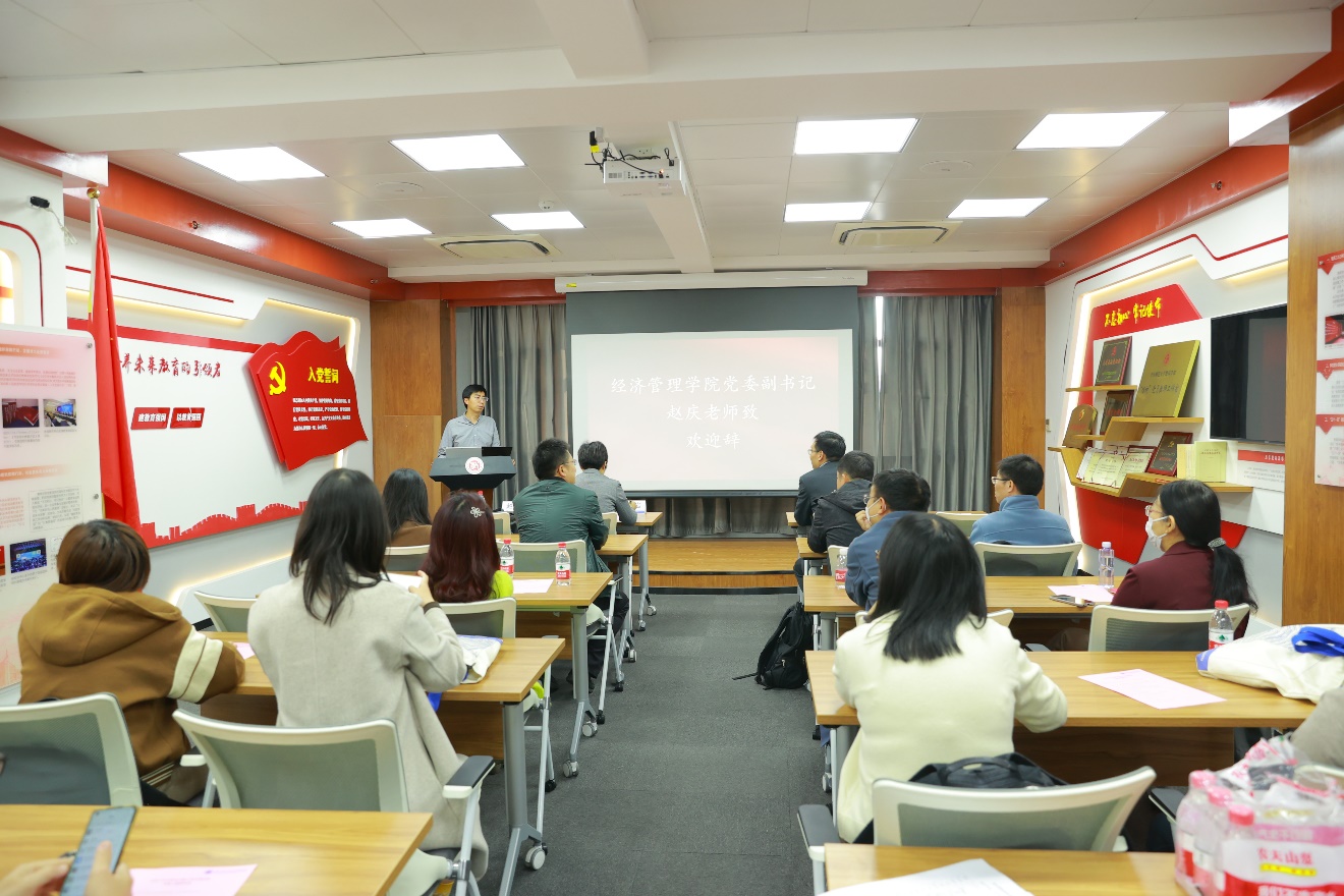 2023年11月29日下午,经济管理公司工商会计教工党支部与2023级工商管理专硕(MBA)党支部联合党建专题主题教育会顺利举行。本次会议由两部分组成,分别是参观学习“奋进的五年•中国共产党yl6809永利第十四次代表大会专题展”和“怎样打造标杆样板支部”专题报告。会议由工商会计教工党支部书记杜刚教授主持。