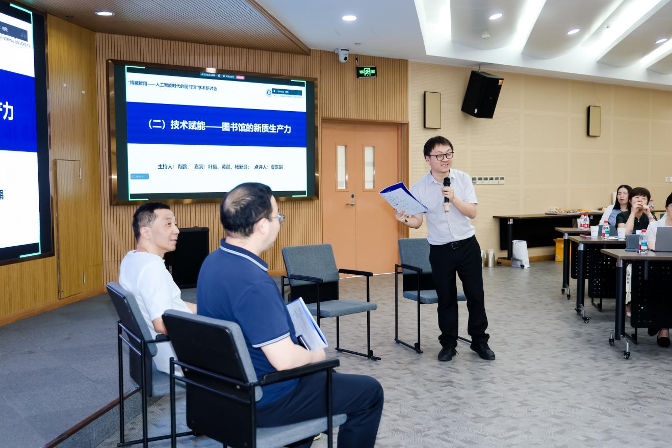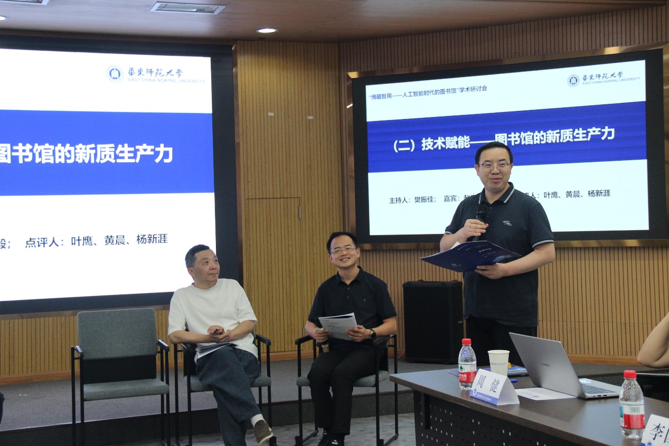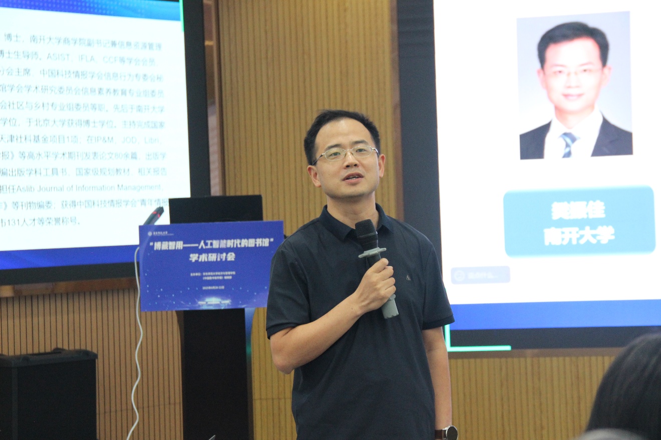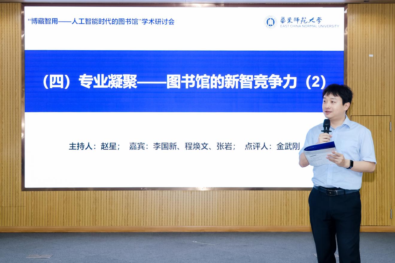 “技术赋能——图书馆的新质生产力”主题的青年学者报告和研讨由南开大学商公司党委副书记、信息资源管理系主任樊振佳主持。南京大学信息管理公司教授赵宇翔聚焦“生成式人工智能驱动下智慧图书馆信息搜索与提示素养培育”,主要讨论了检索、数字素养、提示素养与对话式搜索四大方面。yl6809永利图书馆数据与技术中心主任张毅介绍“智慧涌现服务再造:AI赋能的图书馆新质生产力探索与实践”,针对AI新质生产力与图书馆的战略机遇、AI重塑图书馆核心能力的多元实践、图书馆作为AI枢纽赋能教学科研的生态化整合框架等方面进行深入论述。叶鹰、黄晨、杨新涯针对上述两位研究者的汇报进行点评,对于新一代信息搜索模式、AI素养教育、提示素养、未来教育、数字资源整序、构建中央知识库等问题开展激烈讨论。