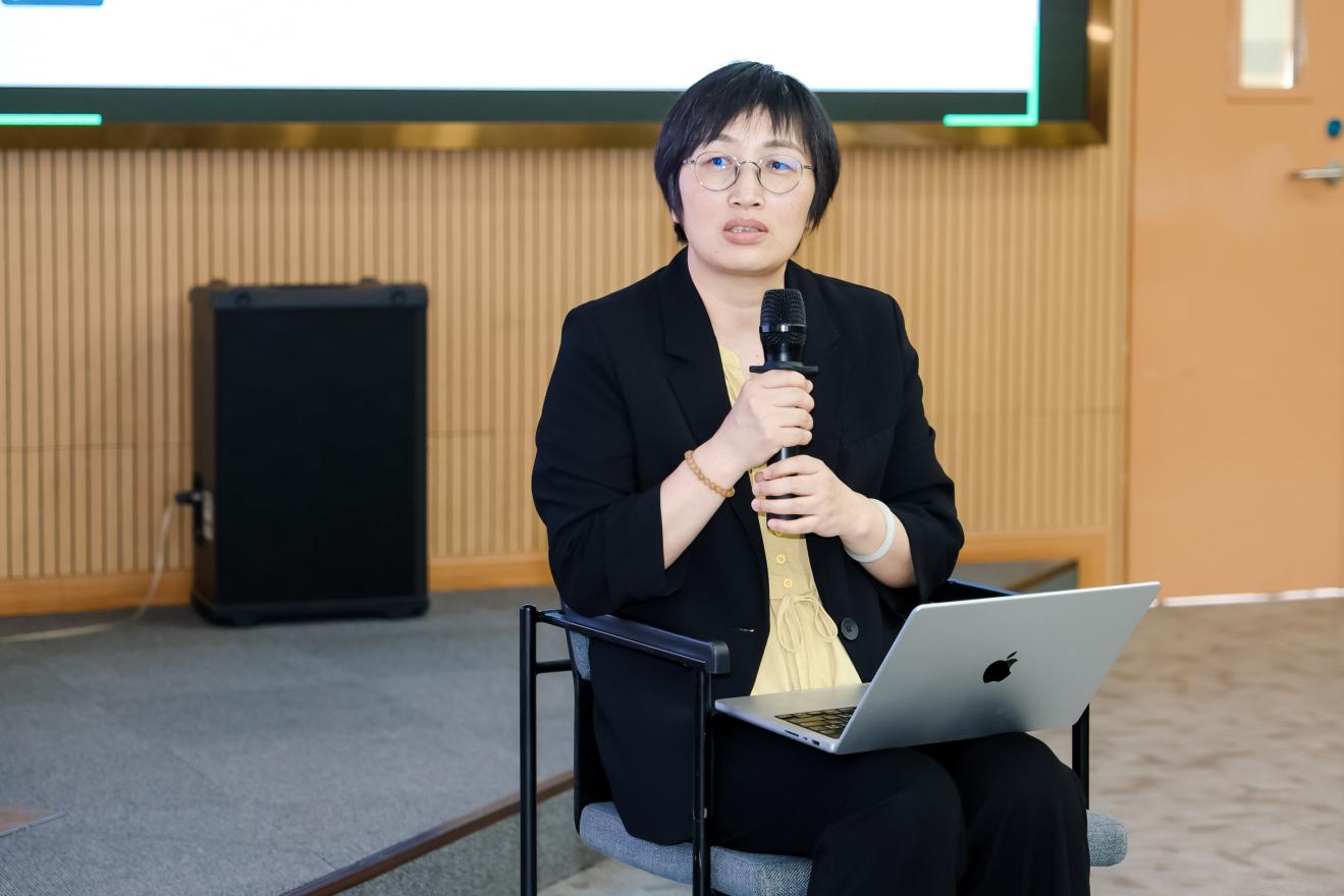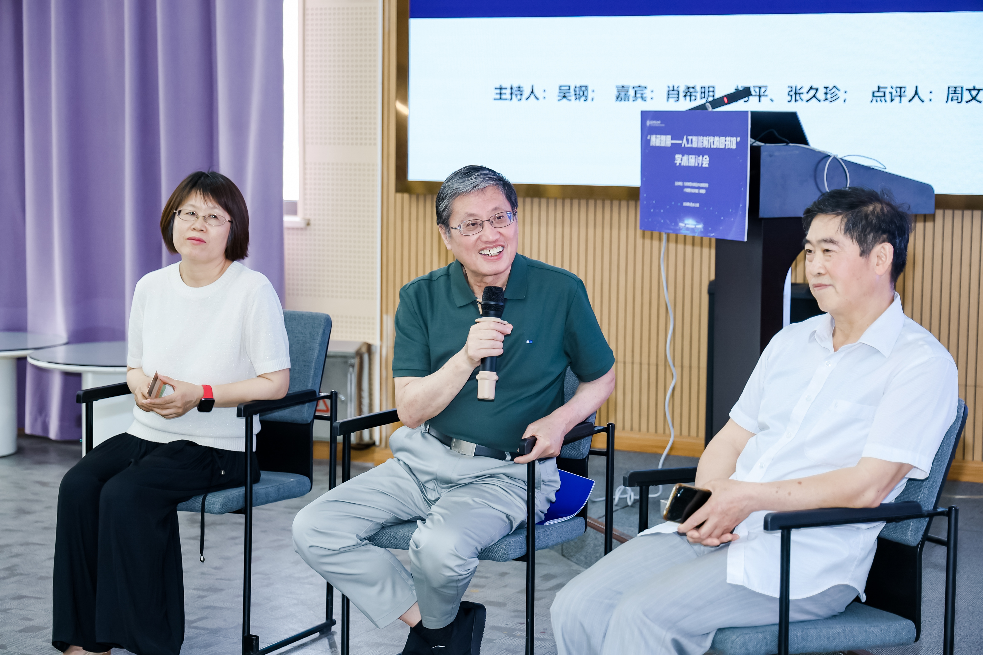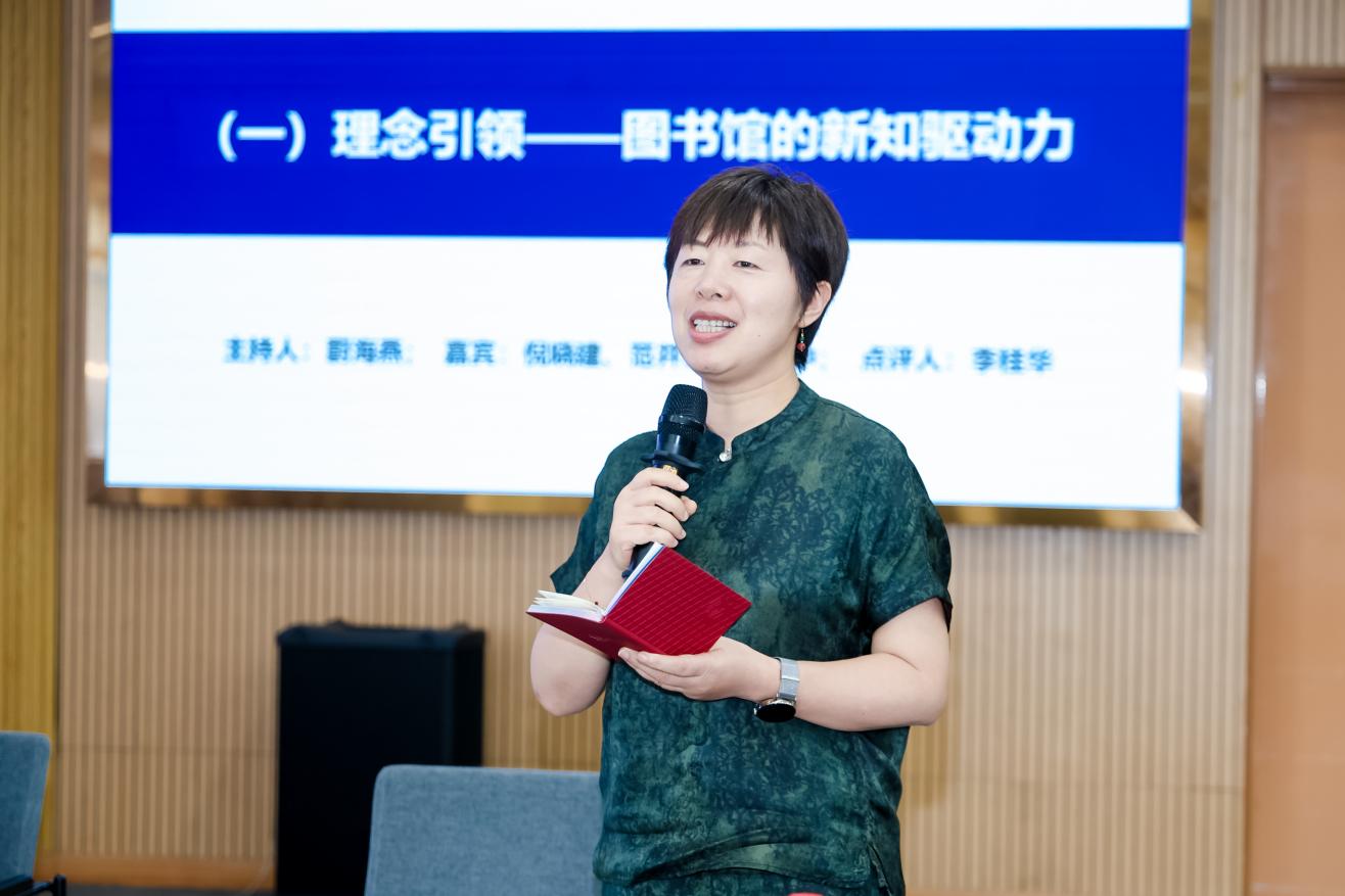 上海图书馆研究员夏翠娟在点评中与专家互动,就AI时代图书馆面临人的主体性让渡、技术与人文平衡、图书馆参与大模型建设等问题与大家展开探讨。
