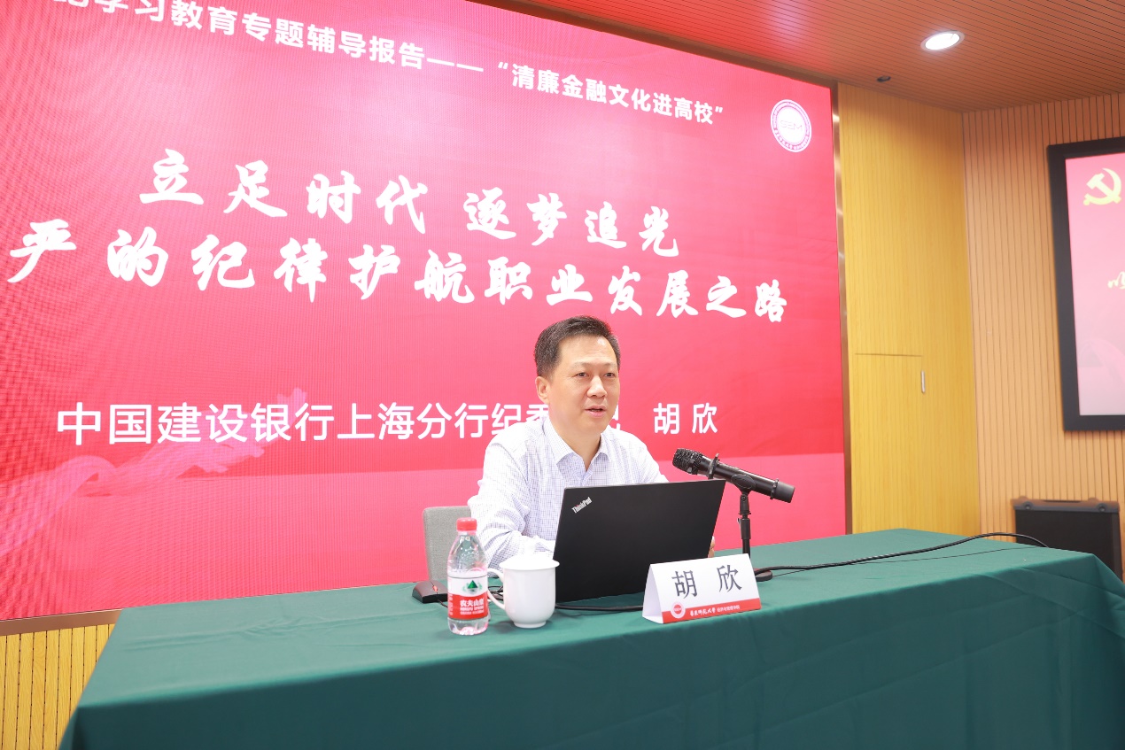 胡欣以“立足时代、逐梦追光,以严的纪律护航职业发展之路”为题作党纪学习教育专题辅导报告。他结合从业经历分享了新时代金融反腐形势和任务,并详细解读新修订的《中国共产党纪律处分条例》与中央八项规定精神,引用多个具体生动案例,阐释五种党纪处分、六大纪律,提醒毕业生党员以案为鉴,谨守三个“千万”,扣好“第一粒扣子”。他希望毕业生党员做“三有”青年,即志存高远的有志青年、锐意进取的有为青年、严守底线的有德青年,知敬畏、存戒惧、守底线,用遵规守纪打好人生底色,在高质量发展中勇立时代潮头。