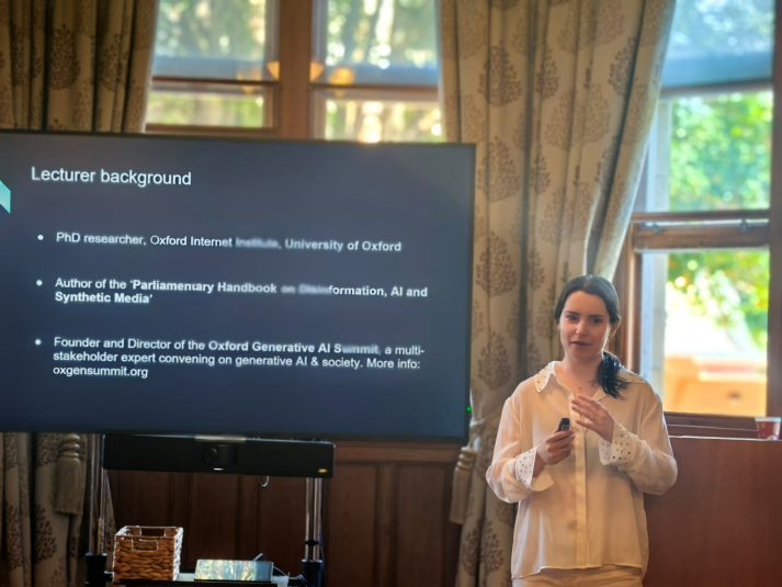 Ms Cassidy Bereskin是牛津互联网研究所的博士研究员和克拉伦登学者,还是牛津生成式AI峰 会的创始人兼主管。她通过一些典型的案例带领大家认识了什么是生成式人工智能模型、什么是情境化合成媒体,并介绍了“深度伪造”和“武器化合成虚假信息”的定义以及它们的“新”特点。如何应对这些深度伪造和合成虚假信息?近年来已经发展了多层次的,由跨国、国家以及多方利益相关者的多项倡议,卡西迪贝雷斯金女士呼吁在场同学共同培养一个透明、健康的信息生态系统。
