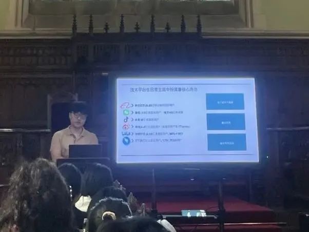 A、B、C三组的同学分别就人工智能与经济的融合影响分析、英国工业革命对现代经济体系的影响分析以及英国当地创意产业的经济价值与发展战略为议题进行了第一场汇报演讲,深入探讨了经济发展新趋势与转型路径。汇报结束后,与会学者和观众之间进行了互动讨论,汇报组同学展现了他们对未来洞察的深刻理解。D、E、F组同学分别就AI发展对英国劳动力市场的影响、赛德商公司介绍以及英国脱欧后的状况为议题进行了第二场汇报演讲。D组分析了AI对英国劳动力市场的双重影响,E组介绍了赛德商公司的学术背景与国际影响力,F组则探讨了英国脱欧后的国际格局及中国应对策略。通过小组的分享和交流,同学们对历史未来、经济技术的影有了更加深刻的理解。