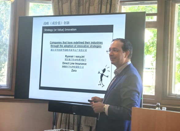Dr. Stuart Kewley是一位资深的学者、教授,毕业于剑桥大学,曾在牛津大学担任教学主任。作为企业家,他专注于提供战略咨询、持续职业发展教育及领导力发展教育等服务。他的中文名字叫“牛力”,作为本次“高级战略领导力”项目的牛津方负责人,牛力博士在开班仪式上详细介绍了本次访学的课程安排和授课团队。