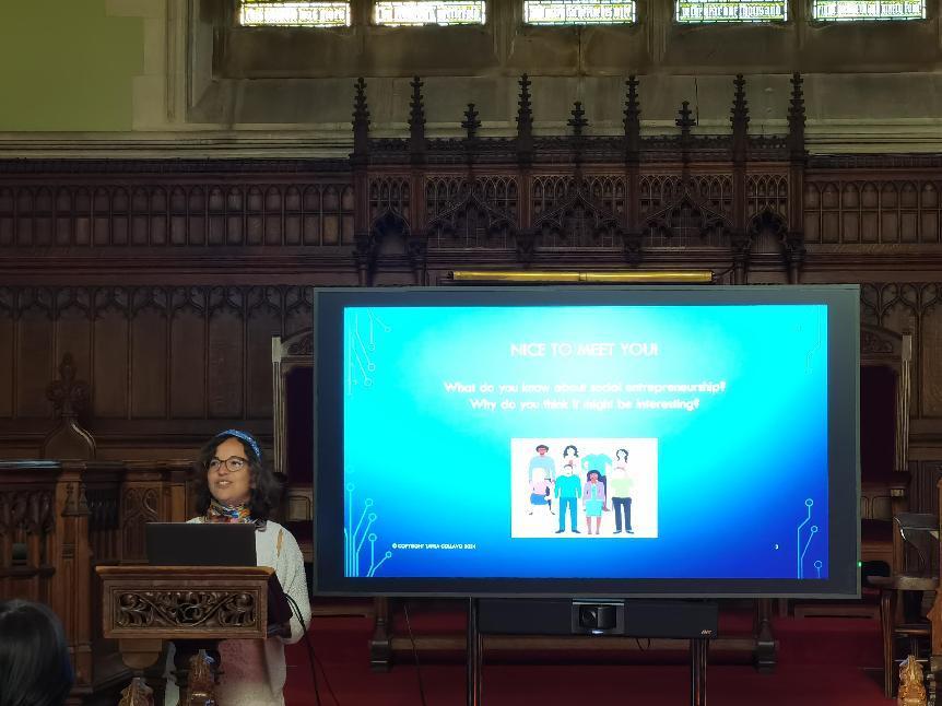 第一节课,塔尼亚·科拉沃博士带领同学详地研究和分析并探讨了公益创业的核心理念和未来发展路径。她认为,公益创业是一种通过创新项目解决社会和环境问题的创业模式。在公益创业的战略创新方面需要结合社会需求与企业价值,明确竞争优势。她介绍了公益创业的三种主流观点:创造变革性项目、支持和发展当地社区,以及以社会和环境影响为主要目标,并结合多个成功案例,深入浅出地分析了公益创业的关键特征和最佳实践。