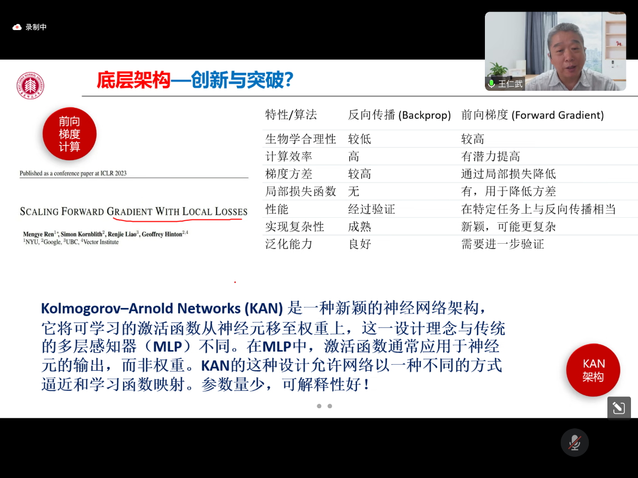 讲座最后,王老师还简述了一些新的神经网络技术如KAN。随后,王老师为本次讲座进行总结,并且热情地和同学互动。此次以“大数据分析进级之路一从神经网络到大语言模型”为主题的前沿讲座在师生的赞誉声中圆满结束!