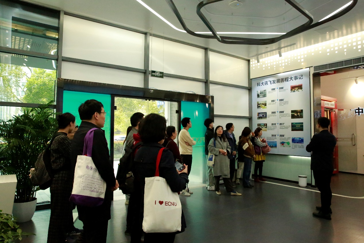 科大讯飞(上海)科技有限公司大客户总监赵望淙带领大家参访科大讯飞人工智能体验馆。支部党员深入了解了科大讯飞自1999年至今的成长历程以及企业发展的重要里程碑,通过参观“AI+听见”、“AI+教育”、“AI+医疗”、“AI+政府”等多个主题展区,沉浸式体验并感受人工智能的魅力。