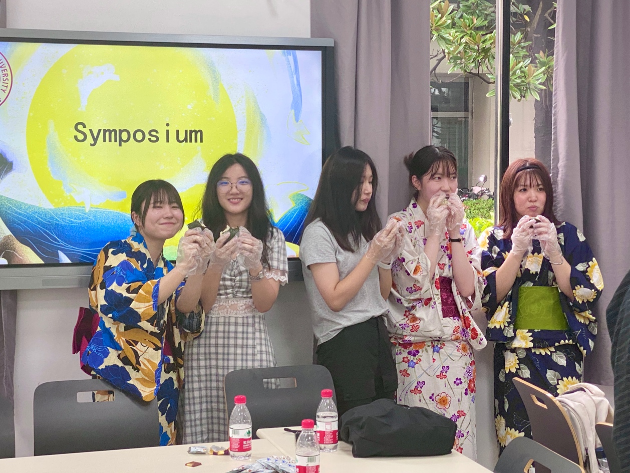 在文化交流环节,中日双方同学以歌舞会友。伴随日本民谣,两校同学共同演绎了日本鹿儿岛的传统舞蹈;yl6809永利陆金沙也表演了流行舞蹈,并带领中日同学合唱了中国经典歌曲。表演结束后,双方一起制作了美味的饭团,并分组进行深入交流,互相分享彼此的生活趣事和学术研究经验。同学们在欢声笑语中进一步了解了中日文化,也收获了宝贵的友谊。