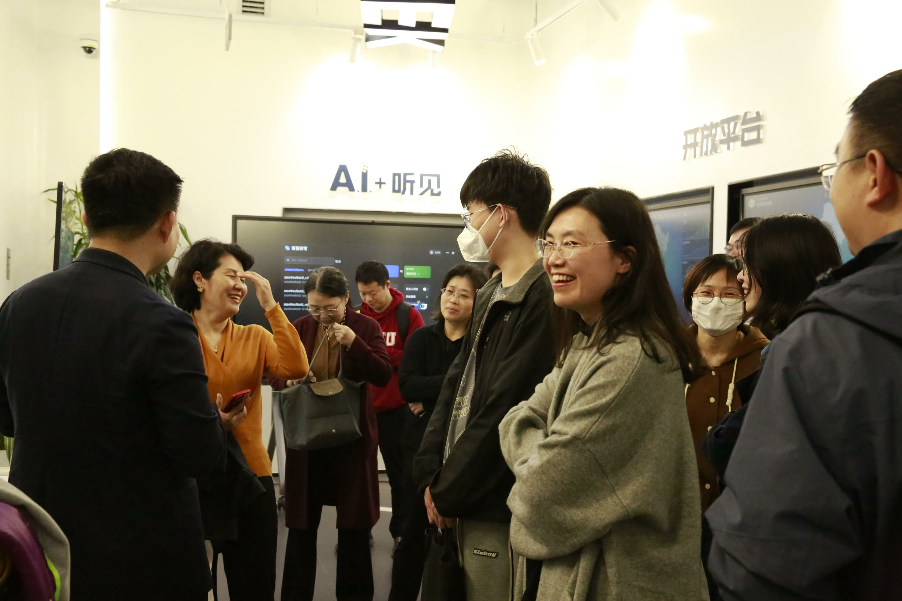 科大讯飞(上海)科技有限公司大客户总监赵望淙带领大家参访科大讯飞人工智能体验馆。支部党员深入了解了科大讯飞自1999年至今的成长历程以及企业发展的重要里程碑,通过参观“AI+听见”、“AI+教育”、“AI+医疗”、“AI+政府”等多个主题展区,沉浸式体验并感受人工智能的魅力。