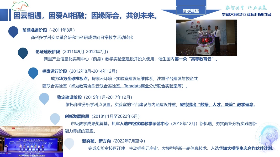 面向未来,中心继续秉承“数据、人才、决策”教学理念、夯实“储能、赋能、产能”运行机制,牢抓新一轮信息技术革命所带来的新机遇,重点将围绕“需求牵引•问题导向•实践驱动——面向科教融汇创新发展的AI赋能教研生态重塑”这一主题,以生态重塑为使命、以新型情境创设为突破、以新一代信息技术为依托,致力于形成以面向未来数字化生存的数字技术资源中心为基座、以面向国家战略性新兴产业发展主战场的决策服务支持为出口、以政产学研用协同联动模式为机制的实践育人新生态,精耕科学赋能实践育人创新实践探索的试验田、竞技场、练兵场,旨在以高标准、宽口径支撑卓越育人。