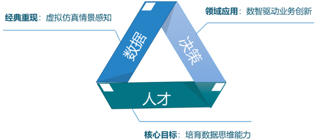 商业分析实验教学中心主要依托公司经管优势学科群组建而成,肩负着经济学、管理学、统计学等学科专业的实验实践教学重任。早在2016年,中心就提出要始终秉承“数据、人才、决策”教学理念、建立健全“储能、赋能、产能”运行机制,聚焦培育经管学科“人才”具备“数据”思维能力,支撑相关团队建设及人才培养活动,旨在实现满足社会对数智驱动赋能业务“决策”的迫切需要。