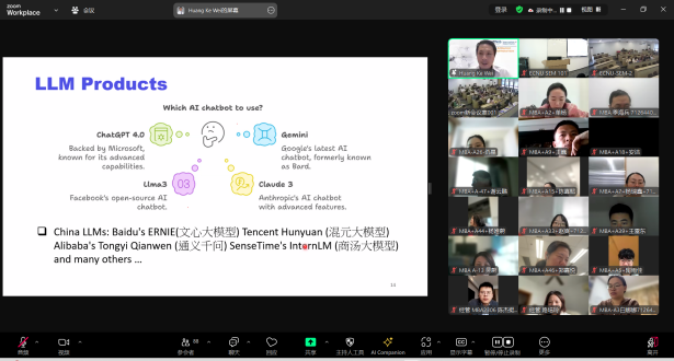 本场讲座由新加坡国立大学亚洲数字金融研究院经理、计算机公司信息系统与分析系执行主任HUANG Ke-Wei副教授主讲,由经管公司金融学系系主任汪莉副教授主持。讲座中,Huang Ke-Wei教授以人工智能(AI)、生成式人工智能(GAI)以及大语言模型(LLM)的概念及应用领域作为切入点进行了详细介绍,接着他对比了生成式人工智能与其他人工智能的区别,指出了生成式人工智能具备数据创新能力的特性。此外他还详细介绍了生成式人工智能的分类和关键应用,如在数值数据领域进行金融隐私保护等,随后他剖析了目前生成式人工智能的局限性:目前的AI输出仍然需要人工审核并进行修正,尤其是金融等特定领域,合规性和事实准确性显得至关重要。教授最后强调,生成式人工智能并不是另一种“元宇宙”技术潮流,而是可以使越来越多种类的任务和工作自动化的有效工具。