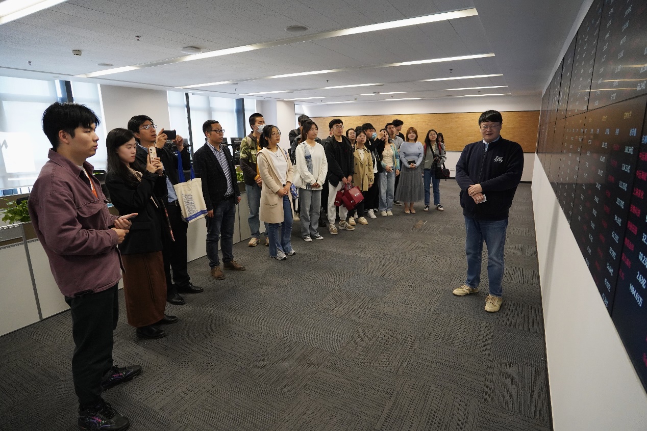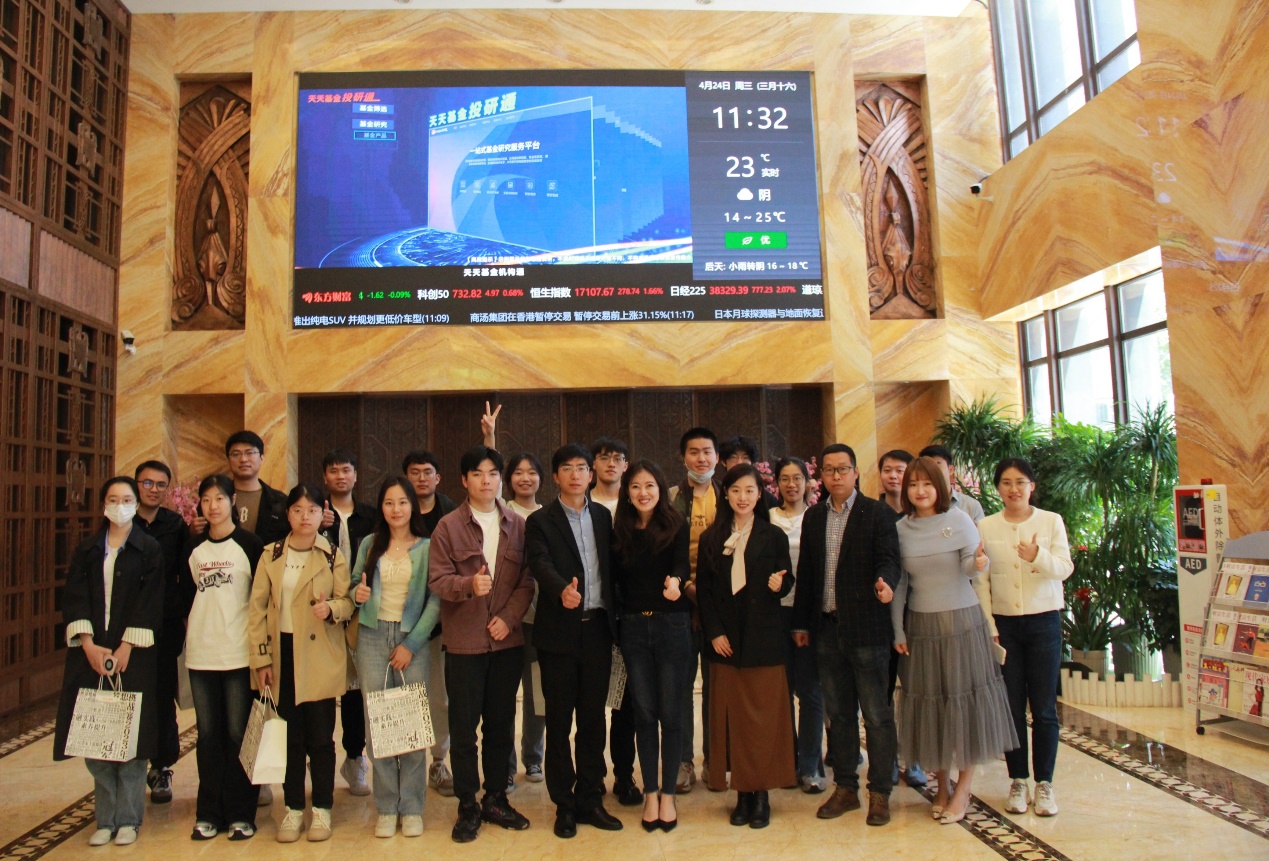 在工作人员的带领下,师生共同参观了东方财富演播室与行情中心,并现场体验了直播访谈、行业动态等数据场景的运用,使大家切身感受到视听技术与行业数据如何赋能公司发展。